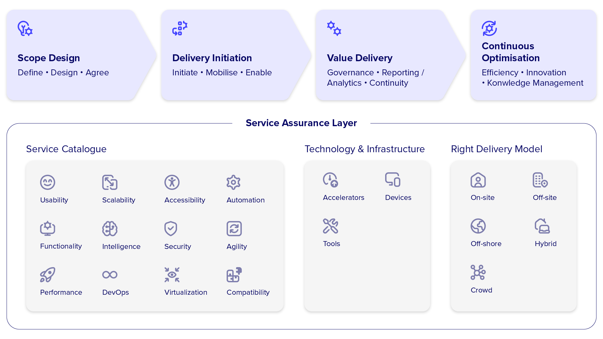 Our outcome-based engagement model brings quality outcomes within a guaranteed cost of delivery, making it a great choice for anyone who wants their testing to be both predictable and cost-efficient.