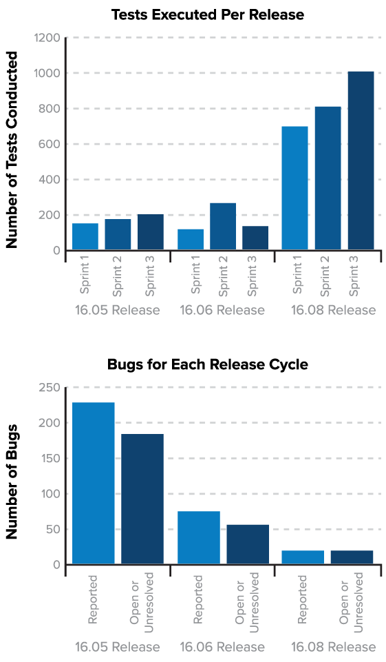 “Taking a snapshot of just the past three months: We have a 4.97× increase in tests executed per release and 20.8× reduction in bugs found.